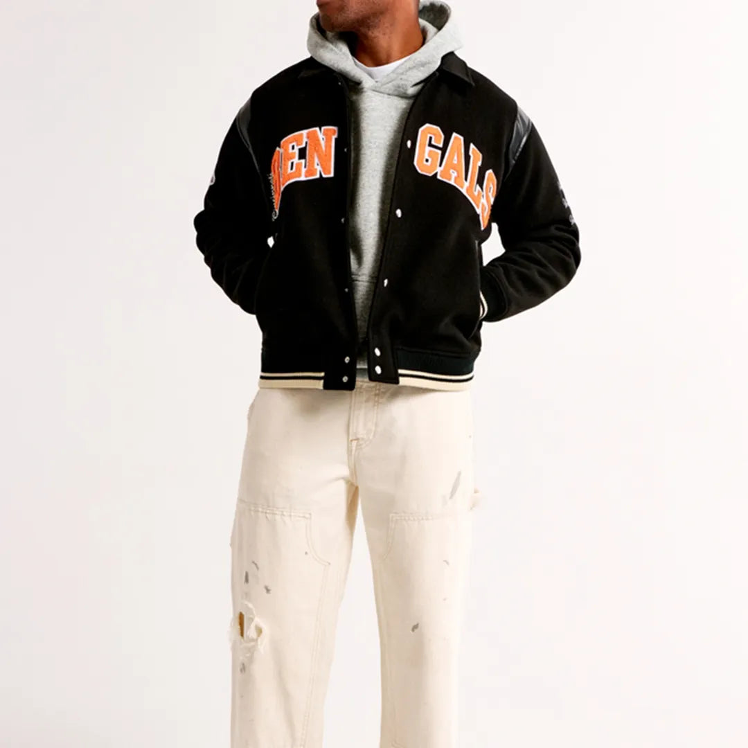 The shirt-style collar, ribbed knitted cuffs, and button closure enhance the traditional varsity aesthetic while ensuring a comfortable fit. With two practical pockets for convenience and a soft viscose lining for added comfort, this jacket is a must-have for Bengals enthusiasts.