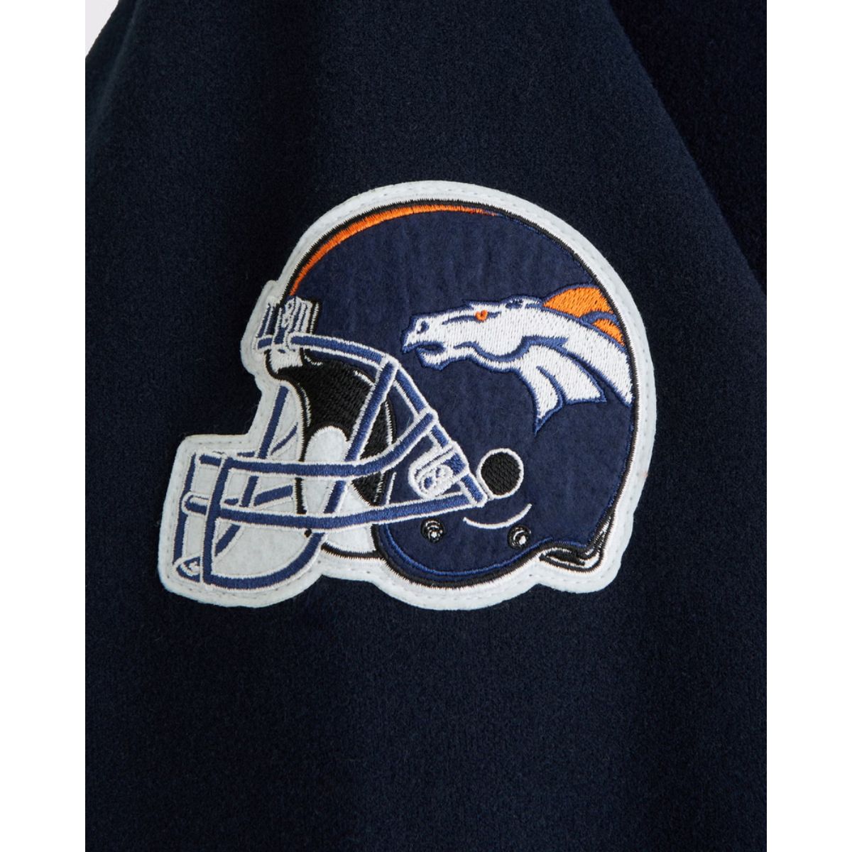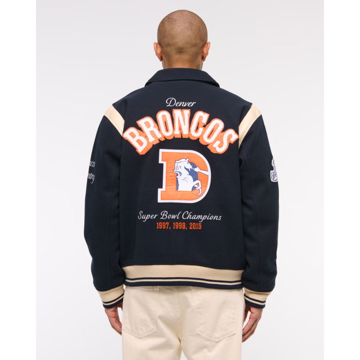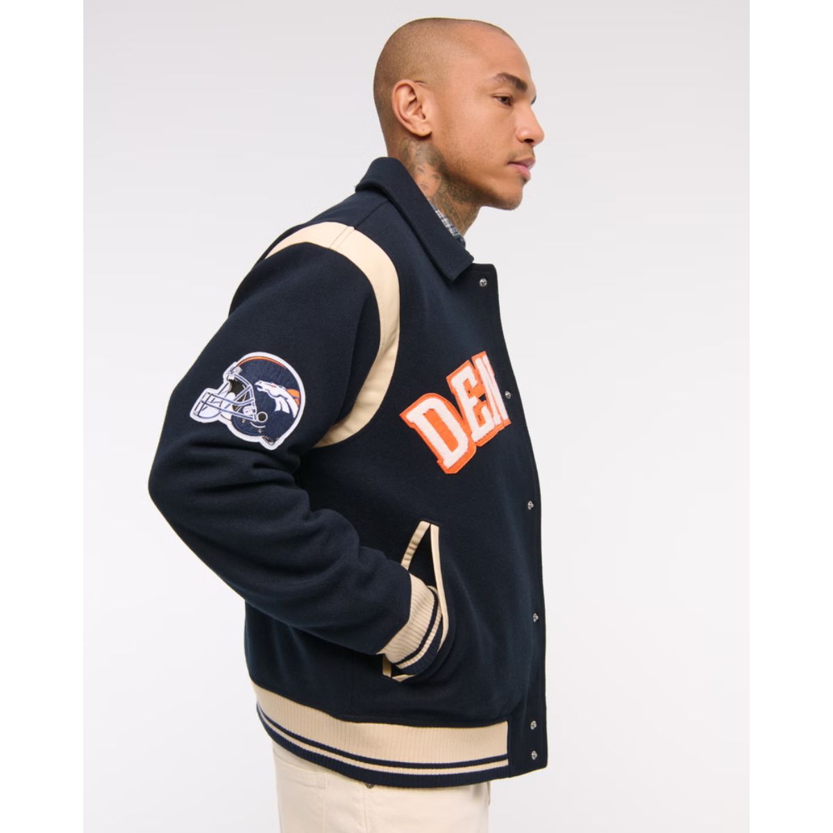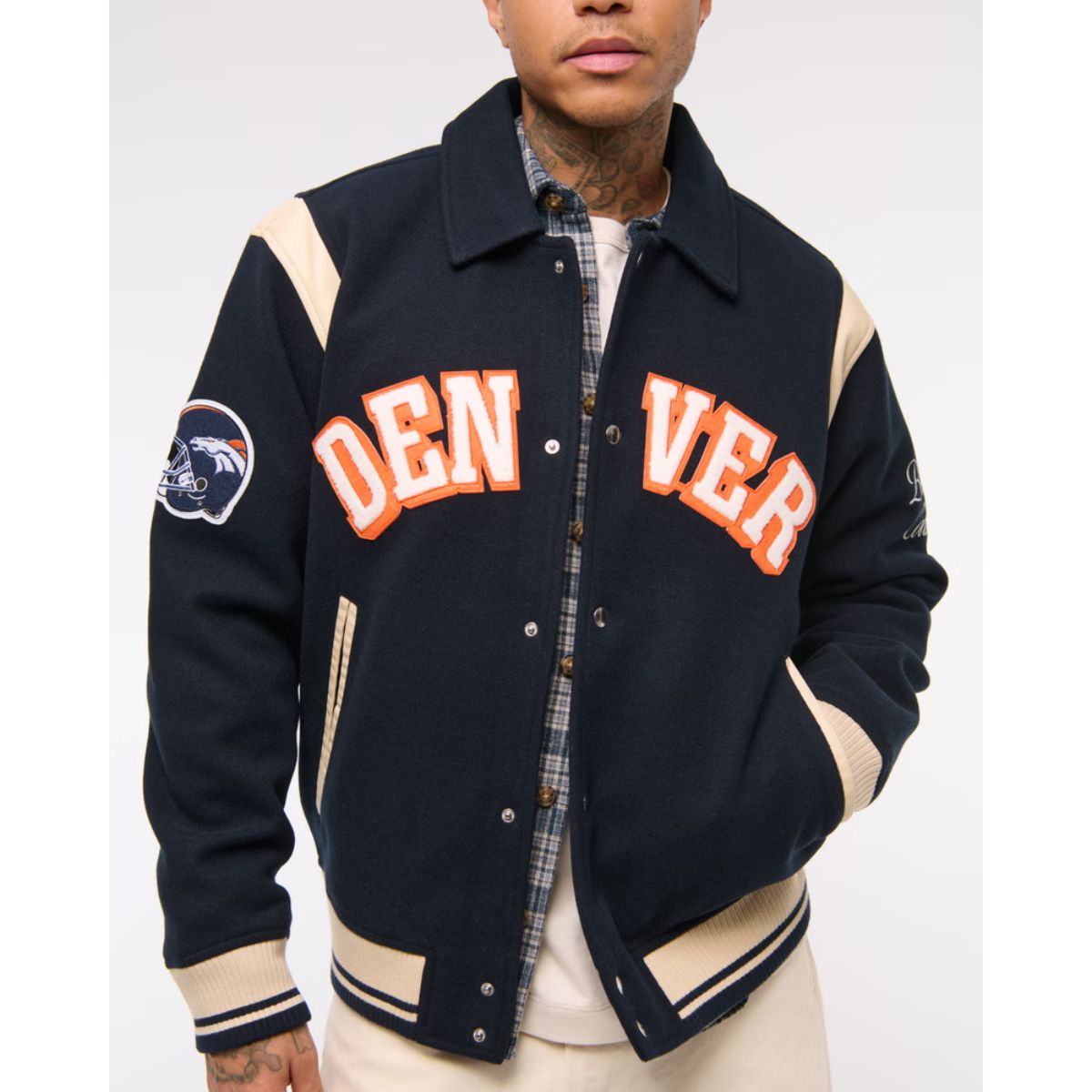 The Denver Broncos Varsity Jacket is a timeless piece that proudly showcases your support for the legendary football franchise. Designed for both men and women, this jacket is crafted from high-quality wool, ensuring warmth and durability. Its glorious navy-blue color highlights your team spirit while maintaining a sleek and stylish appearance.