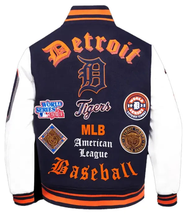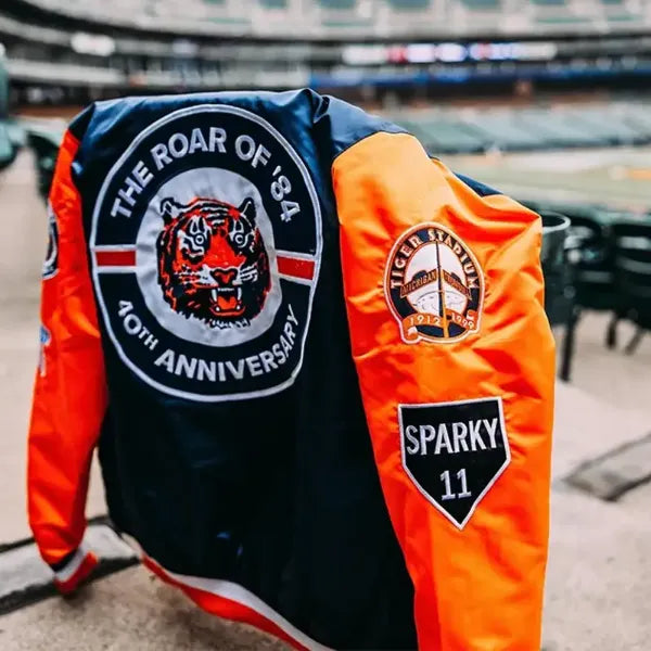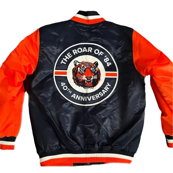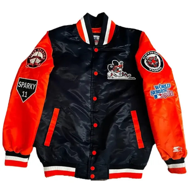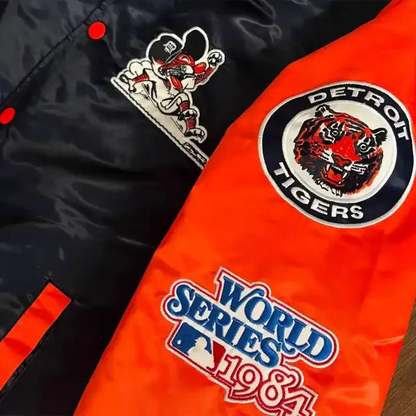 Celebrate the historic Detroit Tigers World Series 1984 victory with this premium Starter Jacket, available in two distinct styles to suit your preference. Style 1 features a luxurious wool body with leather sleeves, navy and white color, and a zippered plus buttoned closure for a timeless varsity look. Style 2 offers a sleek satin finish in bold black and orange, with a buttoned closure for a modern edge.