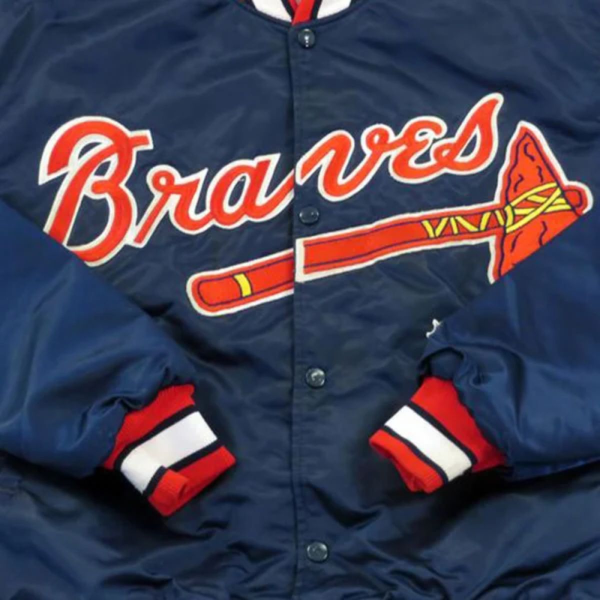 The Hobson Braves Blue Varsity Jacket combines timeless varsity style with premium craftsmanship. Made from high-quality satin, this jacket offers a sleek and lightweight feel, perfect for casual outings or showcasing your Braves pride. The vibrant blue color adds a bold and stylish touch, making it a standout addition to any wardrobe.