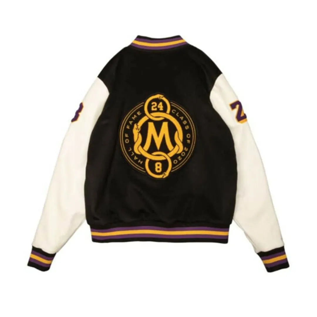 The KB LA Hall of Fame Varsity Jacket is a tribute to timeless style and premium craftsmanship. Made with a wool body and genuine leather sleeves, this jacket offers both durability and sophistication. Its sleek black and white color scheme exudes classic varsity appeal, making it a standout piece for casual outings or showing off your Hall of Fame pride.