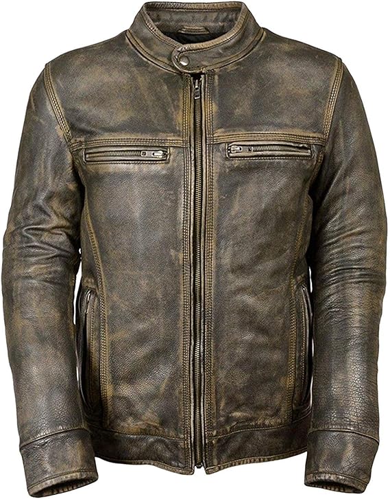 Shop Men’s High-Quality Leather Jacket with secure zipper closure, soft polyester lining, and durable double stitching. Quality checked for lasting wear.